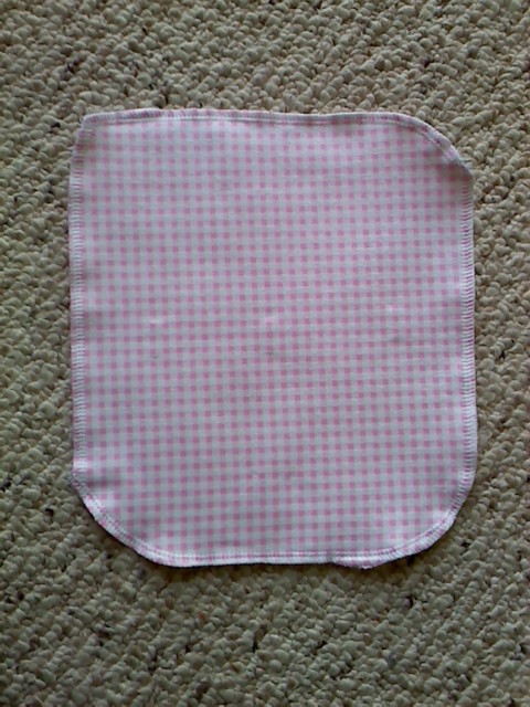 If you do 2 layers, I highly recommend either putting pins in the middle or doing a crossed basting stitch to keep the layers from sliding while sewing. Next I took it to the serger and sewed around the edges. I wanted my corners rounded and sergers apparently only like straight lines, so I will just keep practicing. (and I also realized it's okay if it isn't perfect, it's just going to wipe up poop, anyway) If you are working on a regular sewing machine, the zig-zag stitch will work just as well. Here's my final product.